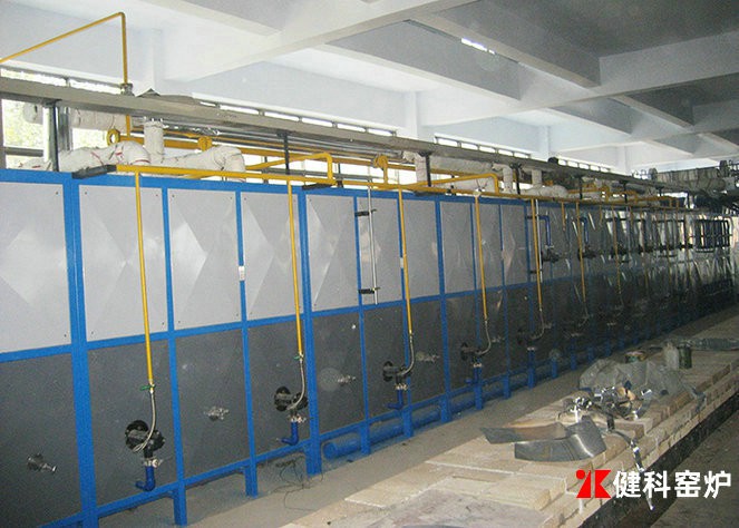 通風(fēng)設(shè)備:包括排煙系統(tǒng)、氣幕攪動(dòng)系統(tǒng)和冷卻系統(tǒng)。其作用是使得窯內(nèi)氣流按一定方向流動(dòng)。